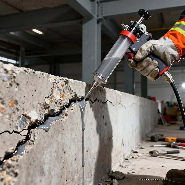پر کردن ترکهای بتن با رزین اپوکسی با دقت بالا، جلوگیری از توسعه ترکها و افزایش استحکام سازه.