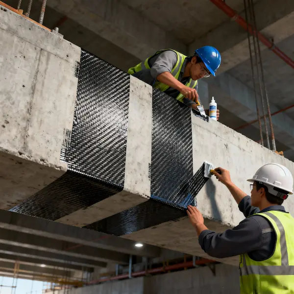 استفاده از الیاف FRP برای تقویت سازههای بتنی، افزایش مقاومت خمشی و برشی و بهبود ایمنی سازه.